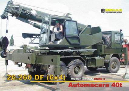 Roman 26.260 DF (Autosasiu pentru automacara de 40 tone) echipat cu motor ROMAN 1035 L6 DTI (diesel, 6 cilindrii in linie, 10344 cmc, 260 CP, EURO 2), cutie de viteze tip ISAMA 10 S 120 (mecanica, cu 10+2 trepte de viteză), tractiune 6X4 si sarcina utila de 26000 kg.