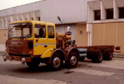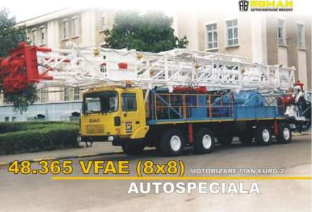 Roman 37.300 VF (Autosasiu pentru autotroliu cu mast pentru interventii la sonde) echipat cu motor CATERPILLAR (300CP, EURO 3), cutie de viteze cu 5+1 trepte de viteza, tractiune 8X4 si sarcina utila de 37000 kg.