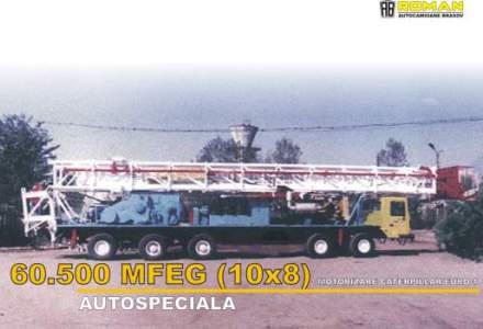 Roman 60.500 MFEG (Autospeciala pentru instalatie TD 100 de interventie la sonde) echipat cu motor CATERPILLAR 3408 C - DITA (diesel, 8 cilindrii in V, 18000 cmc, 505 CP, EURO 1), cutie de viteze tip ALLISON M 5610 ARDB (automata, cu 6+2 trepte de viteză), tractiune 10X8 si sarcina utila de 60000 kg.